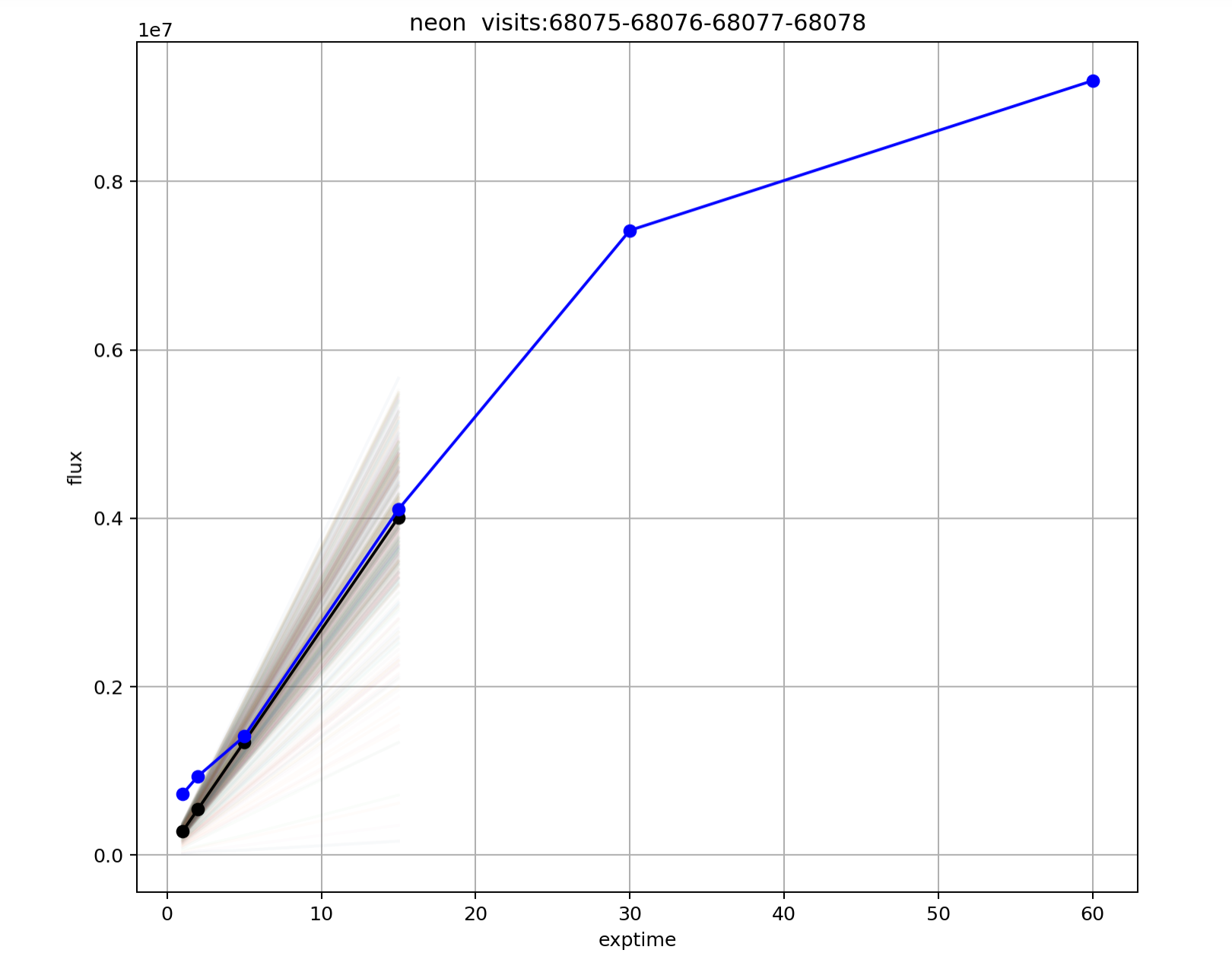 Comparing neon lamp controlled (visit=67717..67722) and shutter controlled(visit=68075..68078), we can see some discrepancies at short exposure time, we have more flux that expected.