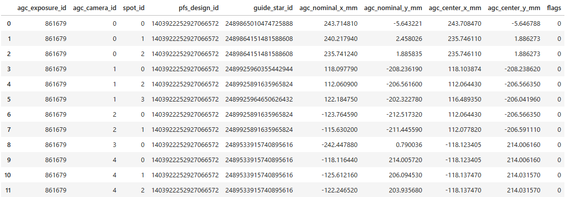 For duplicated stars, the agc_match table shows the same value for agc_center , and different values for agc_nominal And if I convert pfi-mm to ag-pixel, agc_nominal seems match to measured position. Could you check this too?