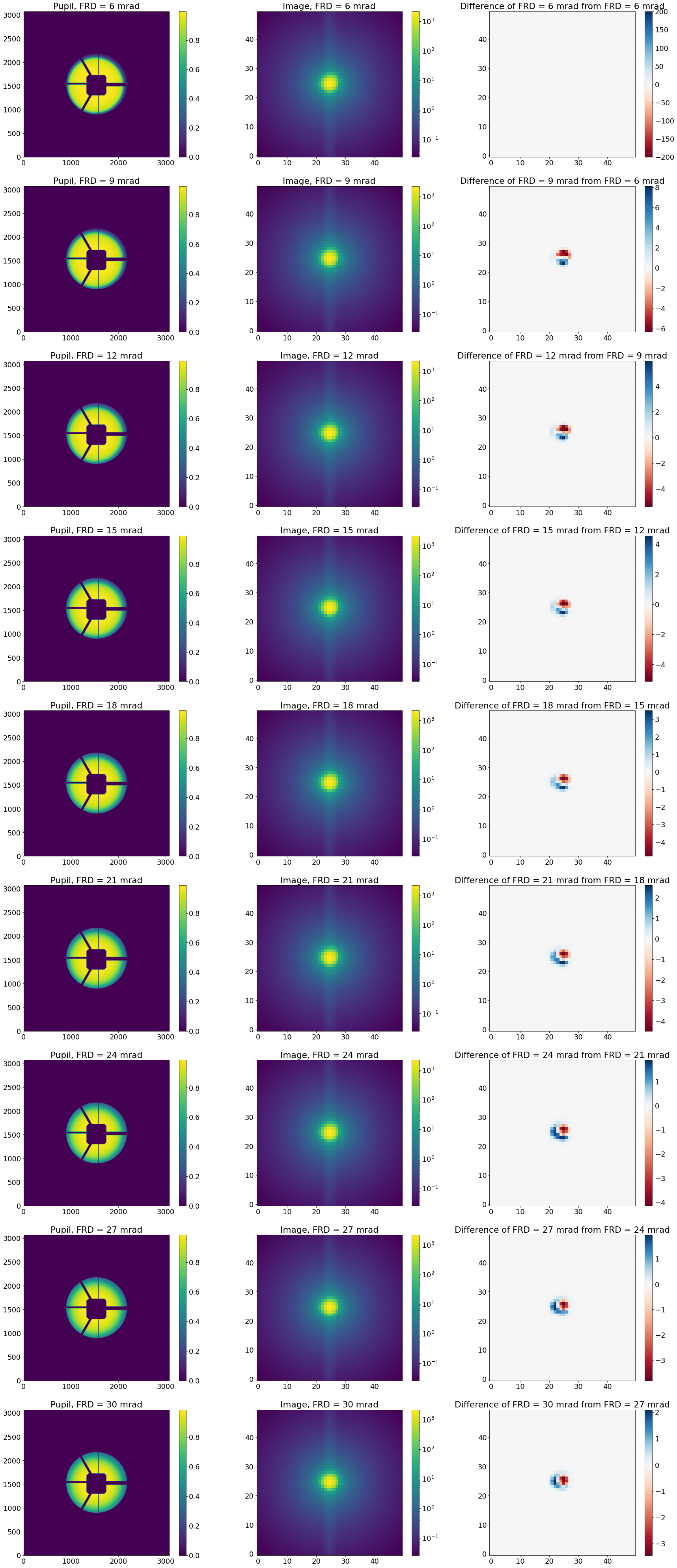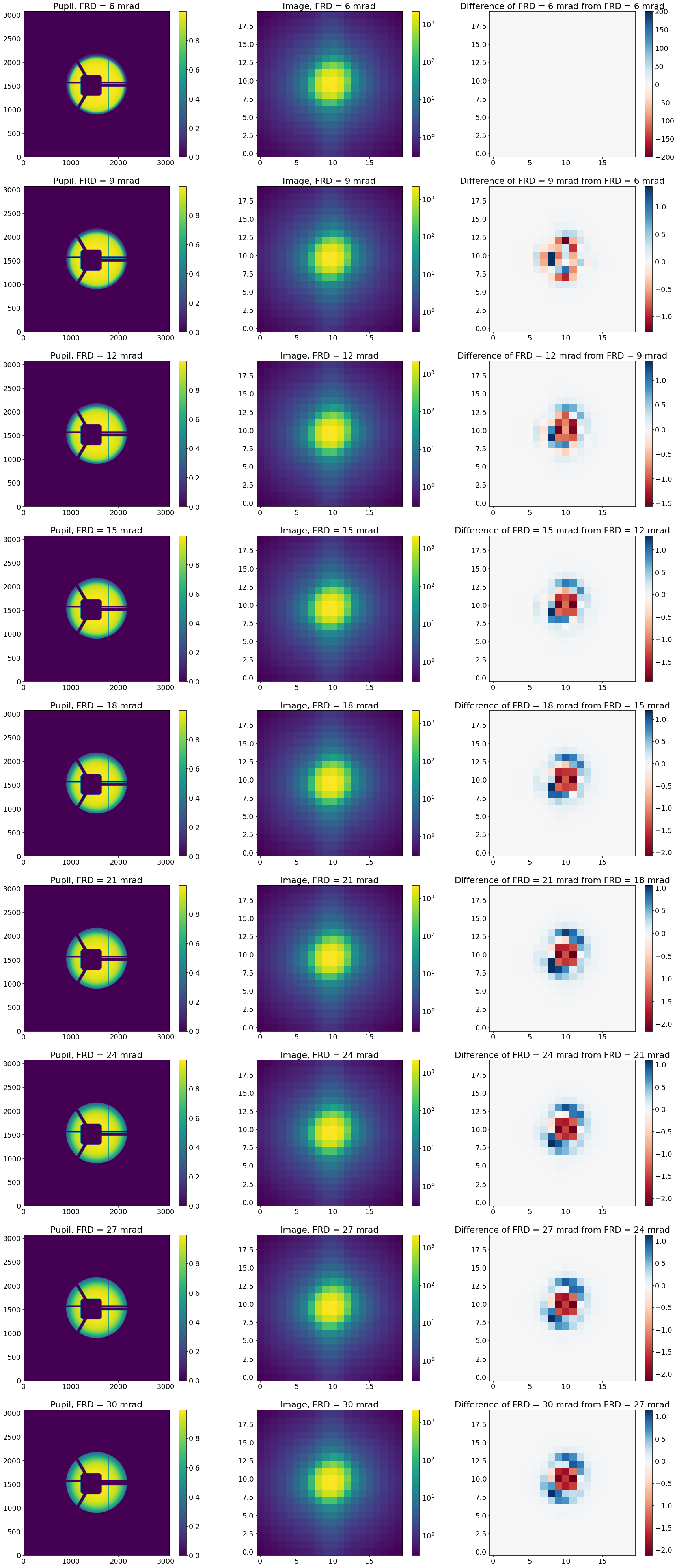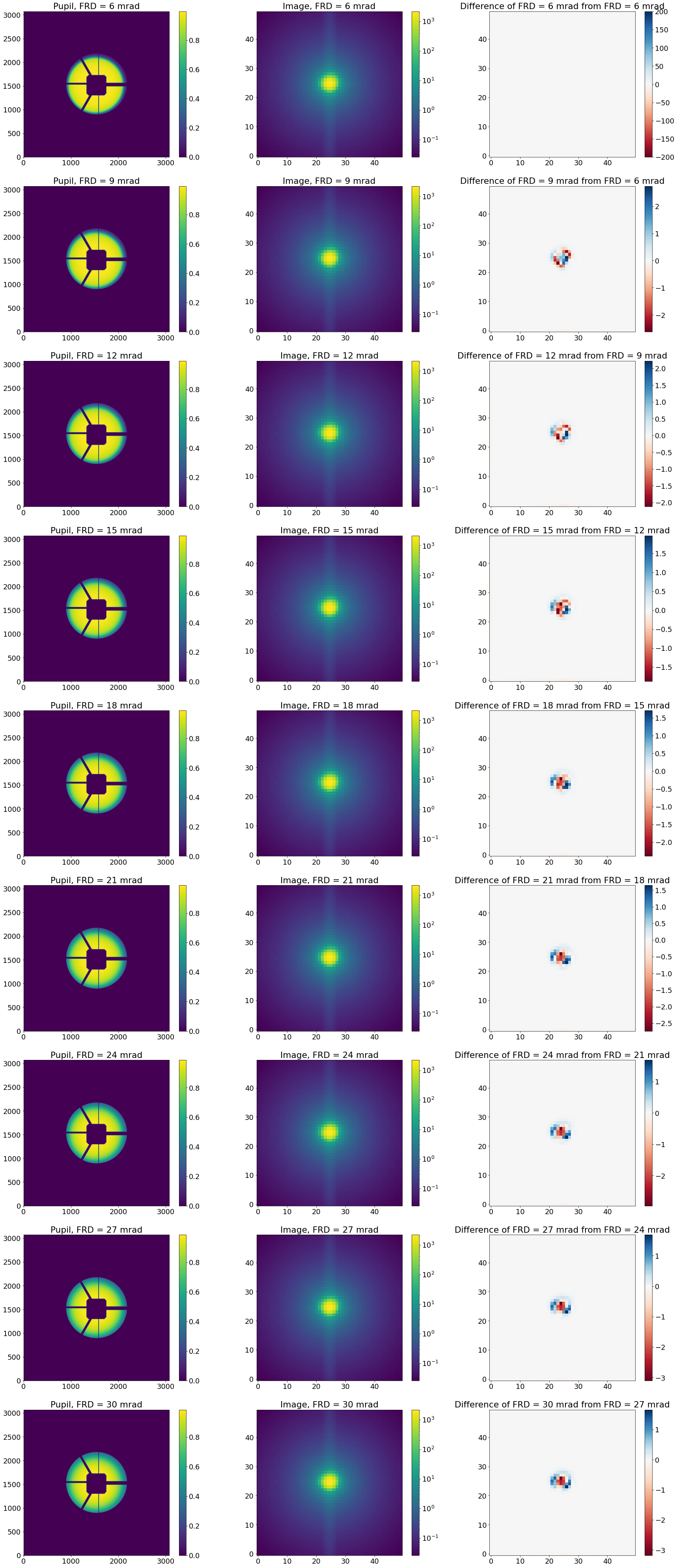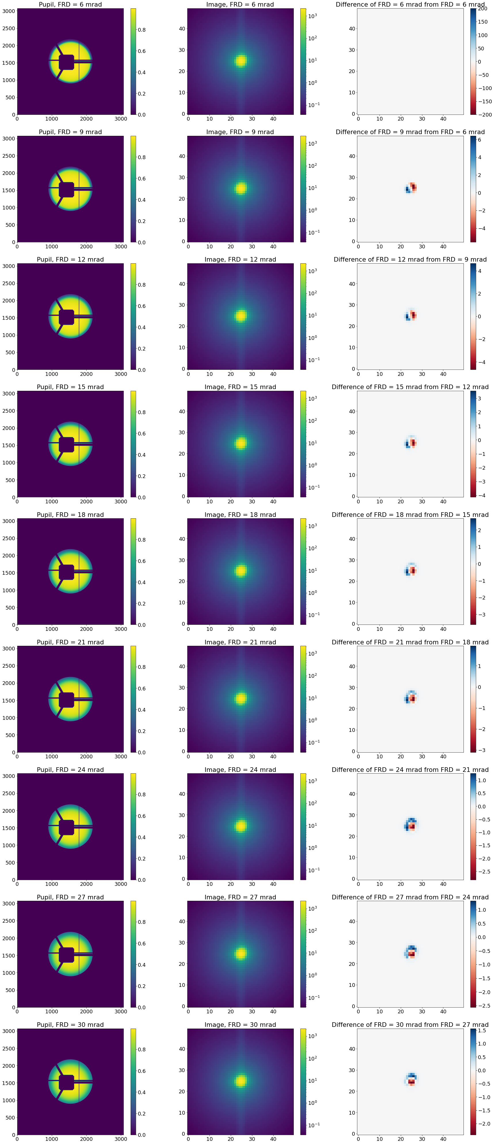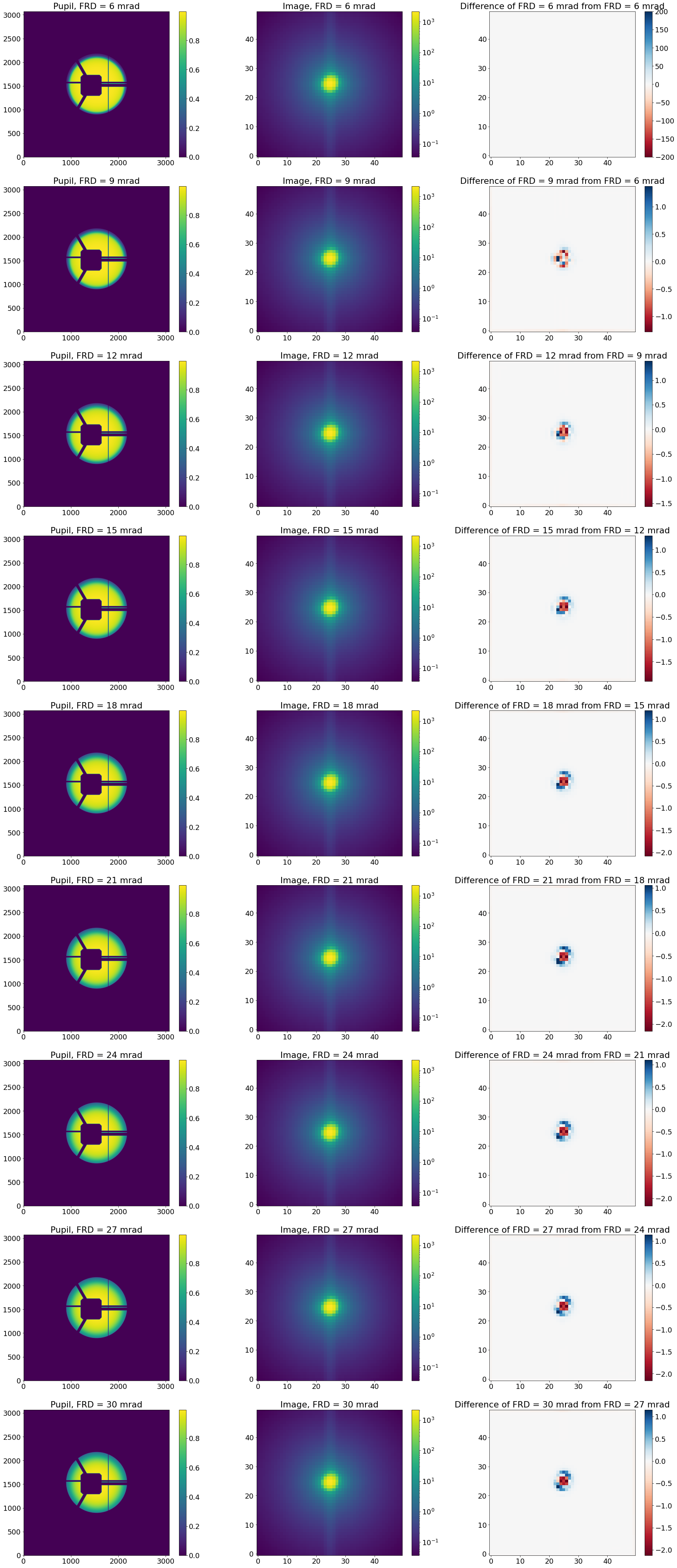 Quantify the effect of variations in higher FRD on the PSF